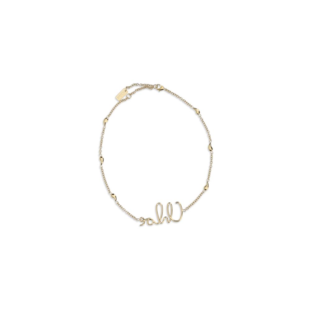 The Iconic Necklace by Chloé in Vintage Gold brass combines elegance and tradition, inspired by the Maison’s famous chain belt. The handwritten logo in soft cursive and details that recall Chloé’s “é” make this jewelry a symbol of refined and timeless style.